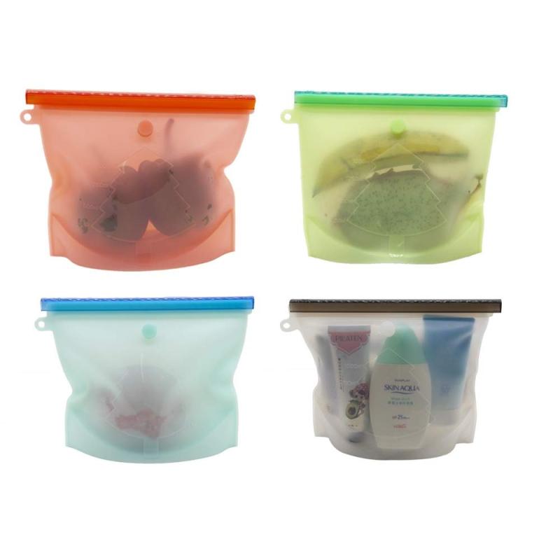 シリコン食品保存パックジップバッグ4個1000ML再利用可能なシリコン食品保存バッグ密閉シール食品貯蔵スープソース密閉冷凍庫フルーツ用の多目的保存容器野菜肉電子レンジと食器洗い…
