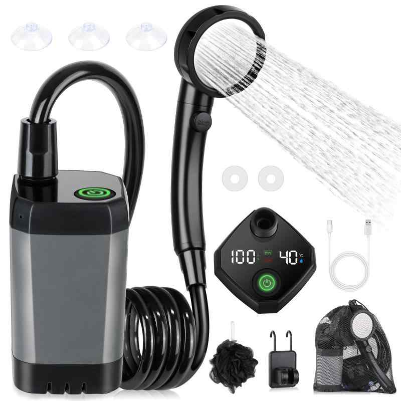 ポータブルシャワーUSB充電式 6000アウトドア 電動シャワー 水流量無段階調節 四つ出水モード 2Mホース 簡易シャワー デ ジタル画面付 キャンプシャワ ー 直射ヘッド&収納袋付