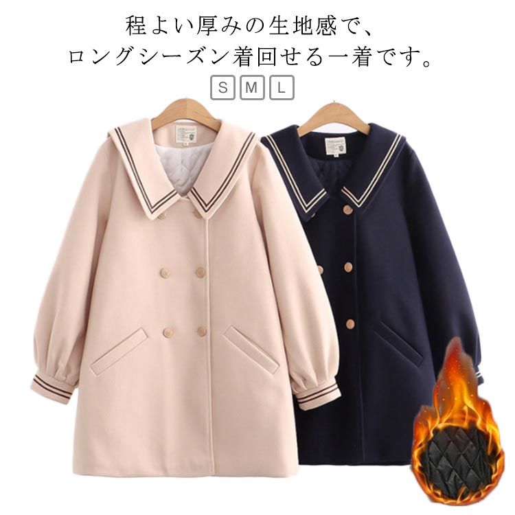 レディース 綿入りジャケット 森ガール綿コート 秋冬 ミディアム丈 コート レディースジャケット アウター 中高生 セーラー風 ブルゾン キルティング 軽量 防寒 中綿コート ゆったり 着痩せ