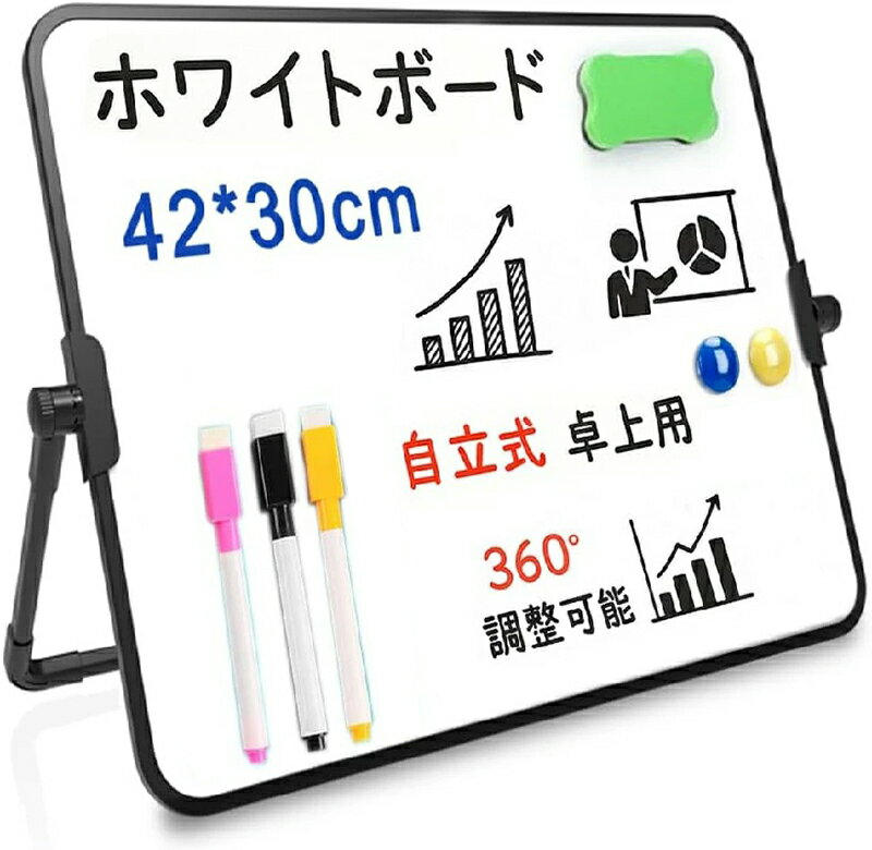 【送料無料】ホワイトボード マグネット対応 自立 イレーザー付 卓上 白板 マーカー付 無地 ホワイトボード スタンド付き 両面 掲示板 メモ 伝言 メッセージボード 子供 お絵描き リビ