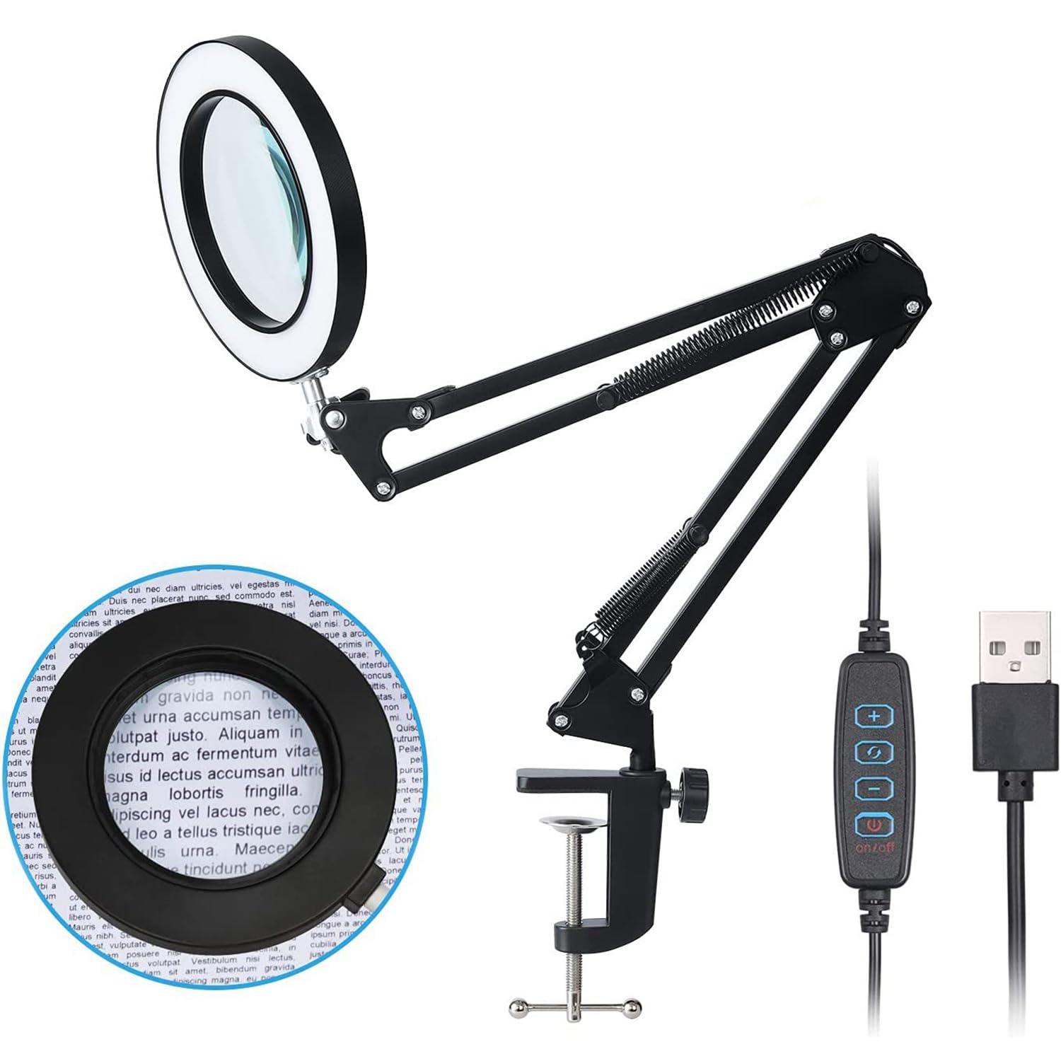 「動画あり」LEDルーペデスクライト 拡大鏡 ledライト付き ルーペデスクライト 電気スタンド 5倍の倍率虫眼鏡を搭載 LEDクリップライト 三色モード 10段階調光 折りたたみ式 360度回転 メ