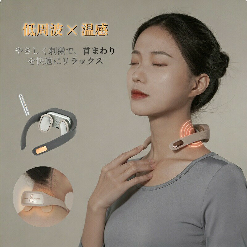 【最大2000OFF】ネックマッサージャー 首 肩 低周波 温熱 マッサージ器 小型 コードレス 15段階調節 多機能 コンパクト 電極パッド タイマー付き 音声ガイダンス 家庭用