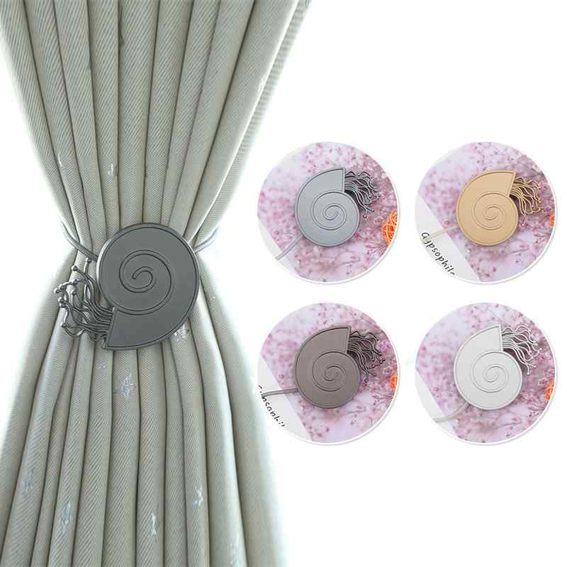 カーテンタッセル マグネット式 貝殻モチーフ 個性的 ロープタイプ シンプルモダン 厚手 薄手対応 おしゃれ インテリア グレー ゴールド コーヒー シルバー 多色展開
