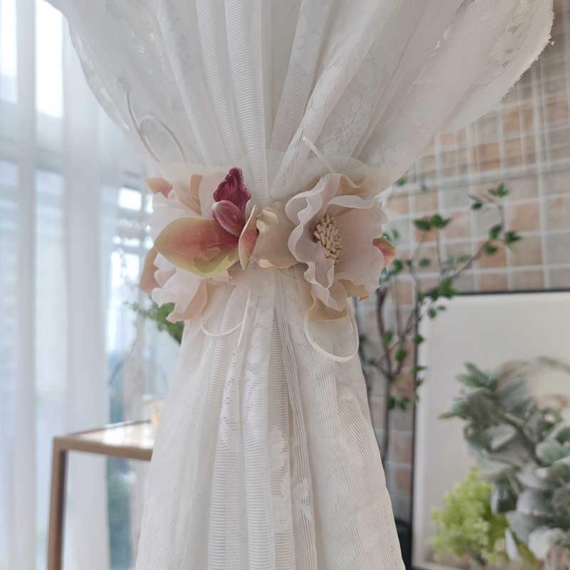 カーテンタッセル マグネット式 磁石クリップ 貝殻 カメリアモチーフ 高級感 エレガント フレンチスタイル おしゃれな窓飾り モダンデザイン シアー レース ドレープカーテン対応