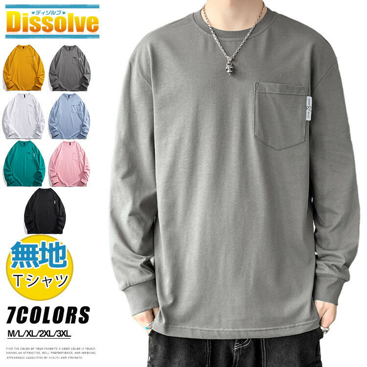 【送料無料】Tシャツ 長袖Tシャツ メンズ クルーネック 無地Tシャツ コットンTシャツ 胸ポケット 全7色 ティーシャツ カットソー 綿 ロンT トップス インナー 春 秋