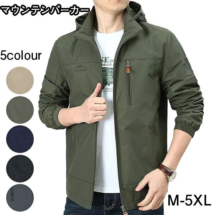 【先着50枚!13%OFFクーポン】ジャケット メンズ マウンテンパーカー アウトドア 防風ジャケット フード付き 無地 通気 軽量 大きいサイズ M-5XL ジャケット 登山ウェア アウター