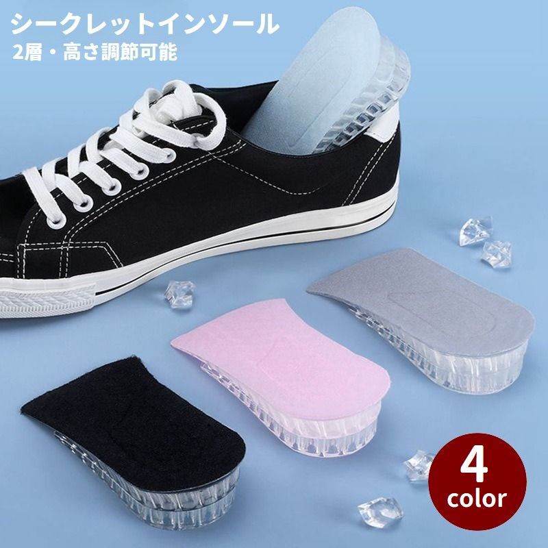 送料無料 シークレットインソール ハーフインソール 2層 かかと用 踵 高さ調節可能 男女兼用 レディース メンズ 中敷き 靴用品 身長アップ 上げ底 クッション 衝撃吸収
