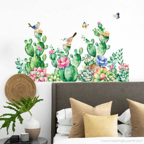 ウォールステッカー シール式 インテリア wall sticker 壁紙 北欧 飾り 内装 カッティングシート DIY リフォーム 自然 サボテン 花 60cm×90cm