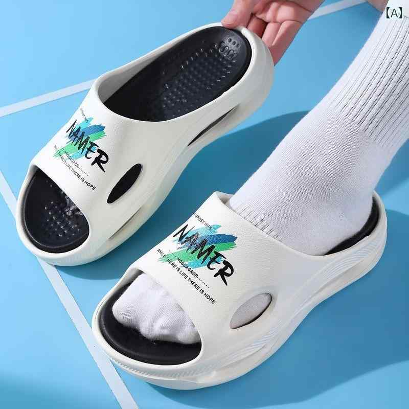 メンズ 厚底 EVA ビーチサンダル 防水 防滑 耐磨 通気性 軽量 夏 外出 室内 ファッション 男性用 シンプル デザイン クッション ビッグシルエット ブラック ブルー グレー オレンジ(x2)