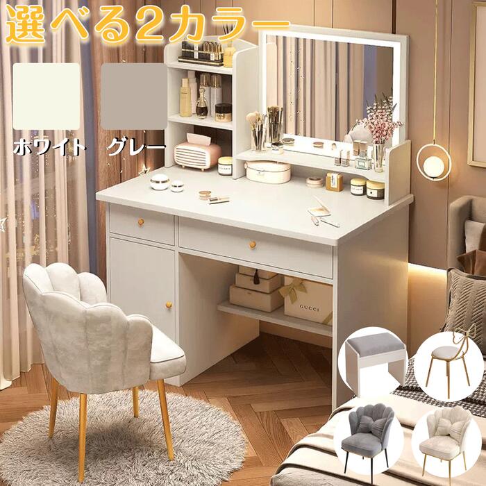 【20時〜P5倍】ドレッサー スツール付き 女優ミラー 化粧台 大容量収納 テーブル 鏡台 コンセント付き ライト付き 3色LED 引き出し 収納 椅子 セット サイド収納 メイク台 シンプル 可愛い
