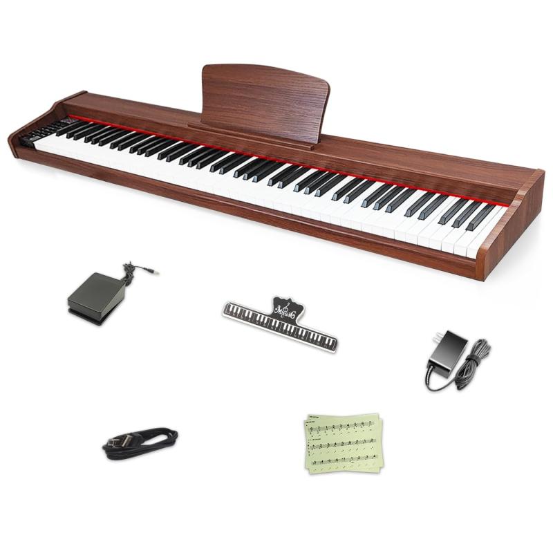 【送料無料】IKTMI 電子ピアノ 88鍵盤 木製 電子ピアノスタンドセット 携帯ピアノ ポータブルピアノ 初心者 子供 ペダル付き Xホルダ付き 持ち運び 色:オレンジ
