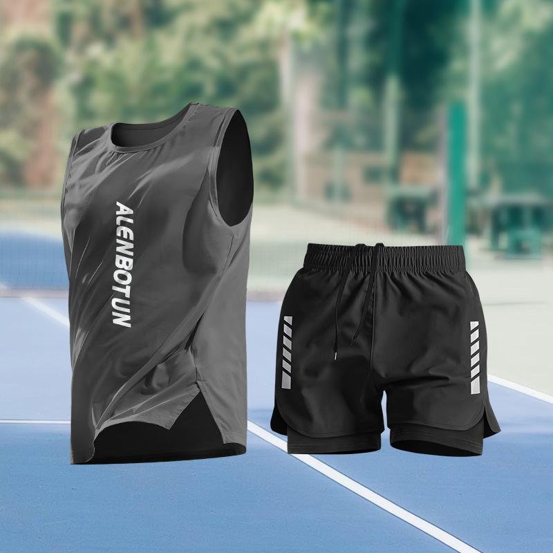 スポーツウェア メンズ 上下セット 夏用 マラソン トレーニングウェア Tシャツ タンクトップ ショートパンツ ポリエステル 吸湿速乾 運動着 部屋着 ルームウェア