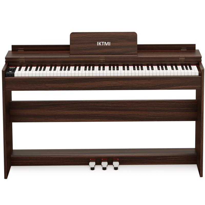 IKTMI電子ピアノ88鍵盤ハンマーアクション88鍵盤木製ピアノ88鍵3本ペダル付きアップライトピアノDigitalPiano人気電子ピアノMIDI対応大人初心者の練習ダークブラウン