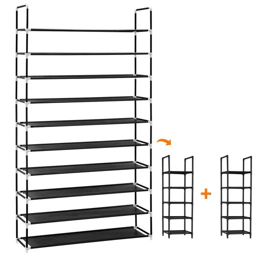 BrFoYuシューズラック10段靴収納靴箱スリムフック付き分割可シューズラック省スペース組み立て式大容量不織布狭い玄関廊下クローゼットアパート用靴棚下駄箱靴入れ(10段ブラック)