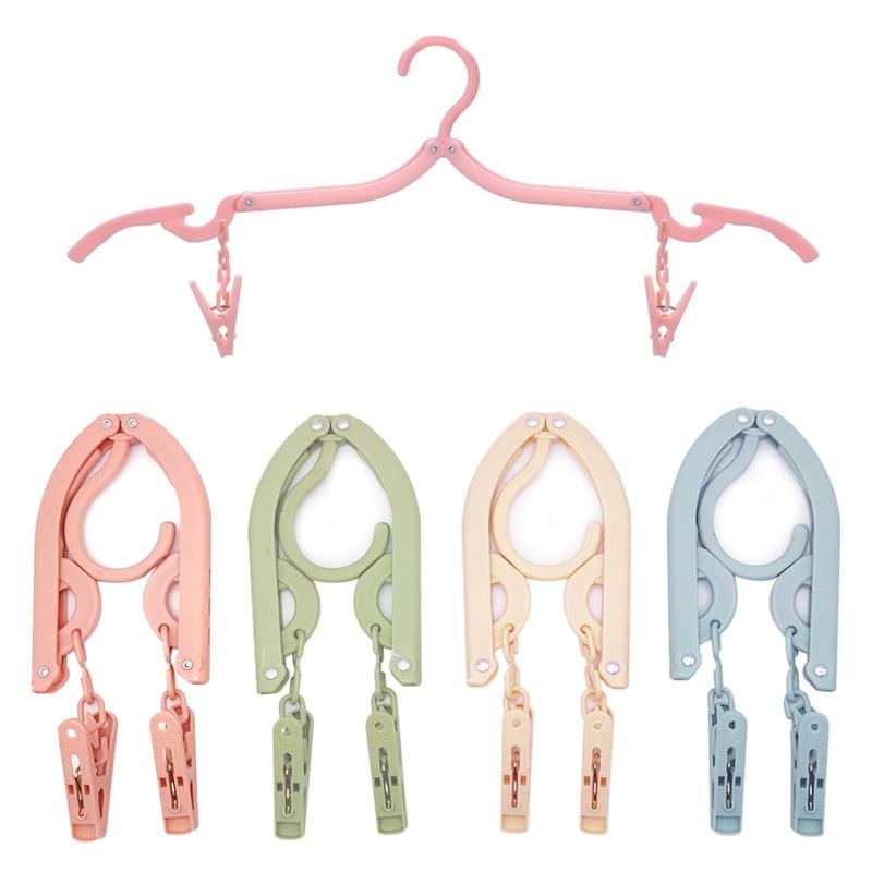 折りたたみハンガー 旅行 4色 4本セット ピンチ付き 携帯ハンガー 折り畳み式 携帯用 洗濯 物干し 便利 軽量 多機能 省スペース 北欧カラー かわいい 旅行 出張 商務 アウトドアなど ピンチ