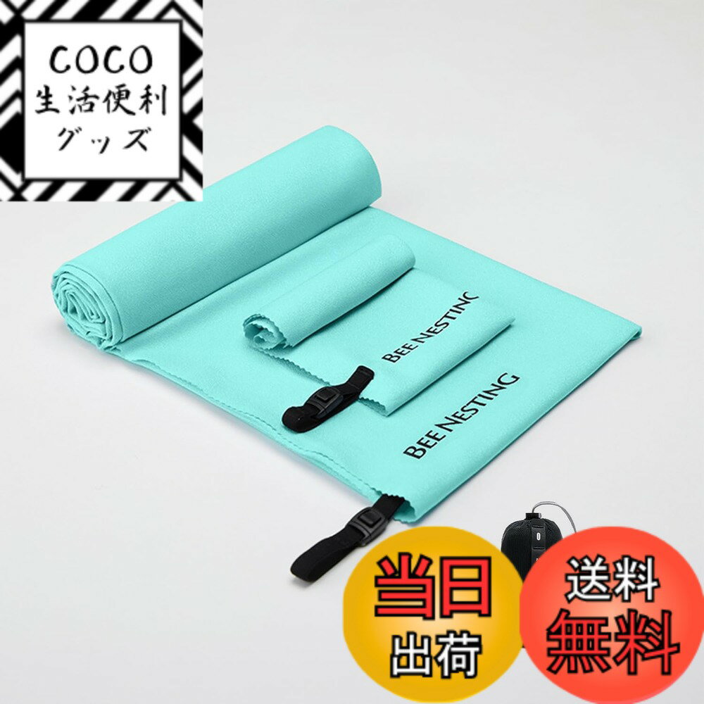 Besince 速乾タオル 髪 マイクロファイバータオル スポーツタオル ジムタオル スイミングタオル セイムタオル 旅行タオル 超吸水 柔らかい 防臭 耐久性 速乾 軽量 収納袋付き 防災 コンパ