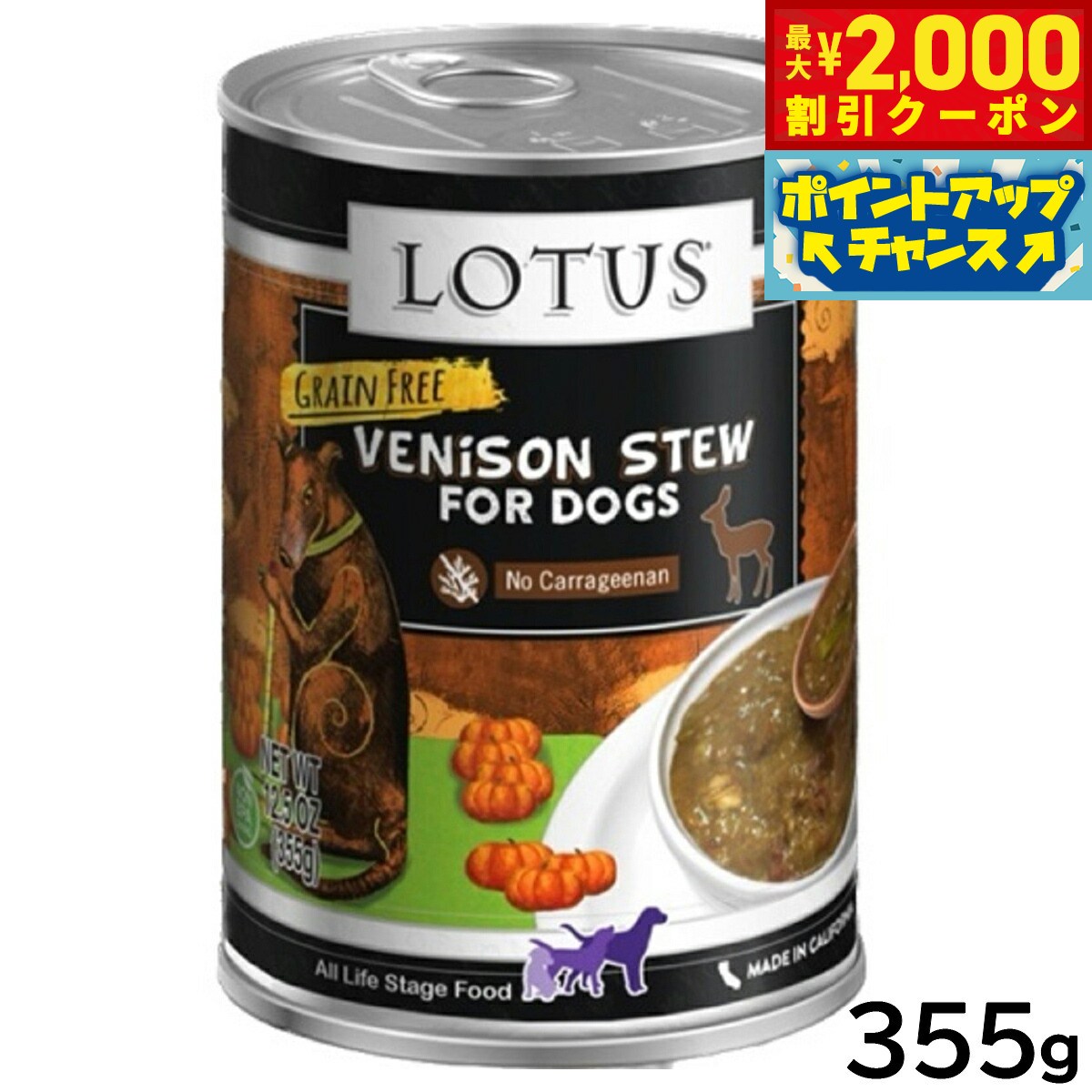 【最大2000円OFFクーポン!&店内ポイント最大52倍!本日限定!】ロータス ドッグフード グレインフリー 無水調理ウェットフード ベニソン シチュー 355g 無添加 缶詰