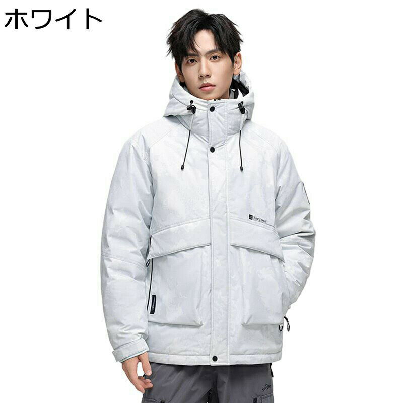 ダウンコート メンズ 防寒ジャケット アウター 冬用 ゆったり カジュアル 保温性 暖かい 防風 カッコイイ アウトドア 無地 フード付き 大容量ポケット パーカー バンケット 通勤通学
