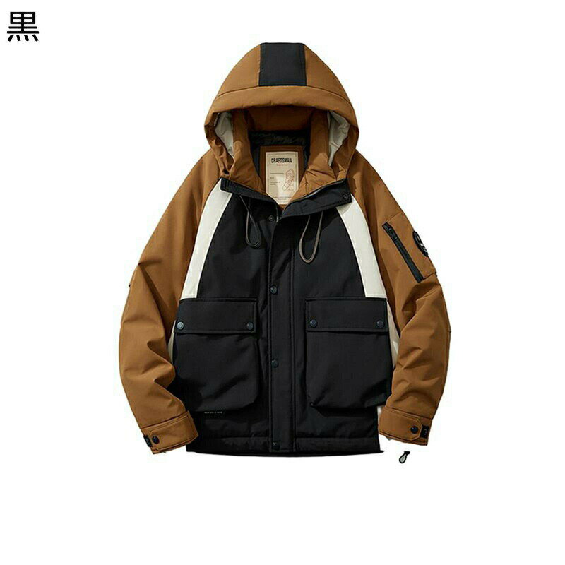 メンズ ダウンジャケット フード付き 大きいサイズ パッチワーク 切り替え コンビ 防寒ジャケット 90%ダウン入れ 長袖 短め 暖かい 厚手 柔らかい 防水性 上着 冬服 男性用 お洒落 流行
