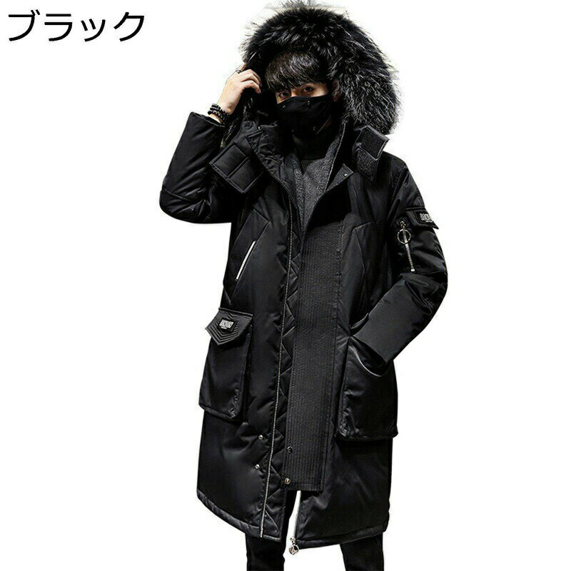 ロングダウンコート メンズ ダウン95 ダウンジャケット ファーフード付き 取り外し可 アウトドア アウター カーゴ 防寒ジャケット 厚め 軽量 体熱反射 保温 防寒対策 あたたかい シンプル お洒落