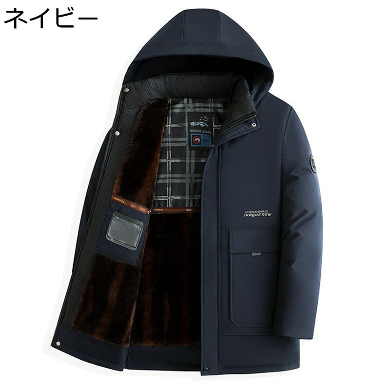 ダウンジャケット メンズ ダウンコート ロングコート フード付き 冬 ダウンフェザー アウター 無地 中綿 ジャケット 厚手 防寒ジャケット 大きいサイズ ウオーキング かっこいい 防寒 防風 保温