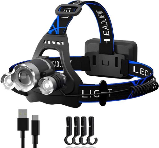 ヘッドライトUSB充電式高輝度LEDマルチファンクション(読書灯、警告灯、スポットライト、オムニランプ、フォグランプ)釣りヘッドランプ明るさ青&赤SOS切替ライトセンサー搭載LEDランタン…