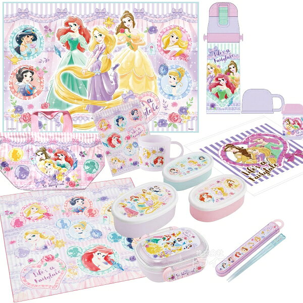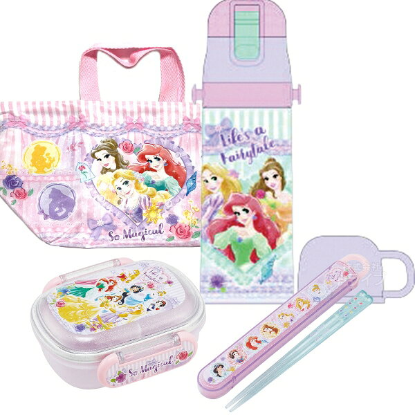 ディズニー プリンセス 26 お買得10点セット 角型お弁当箱 450ml トリオ 巾着 2WAY水筒 コップ コップ袋 レジャーシート おしぼり ランチクロス シール容器3P