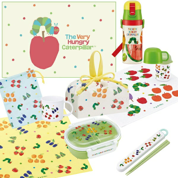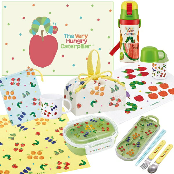 【4月下旬入荷予定】はらぺこあおむし お買得9点セット お弁当箱 中子付 360ml 箸&箸箱 巾着 ストロー2WAY水筒 コップ コップ袋 レジャーシート おしぼり ランチクロス