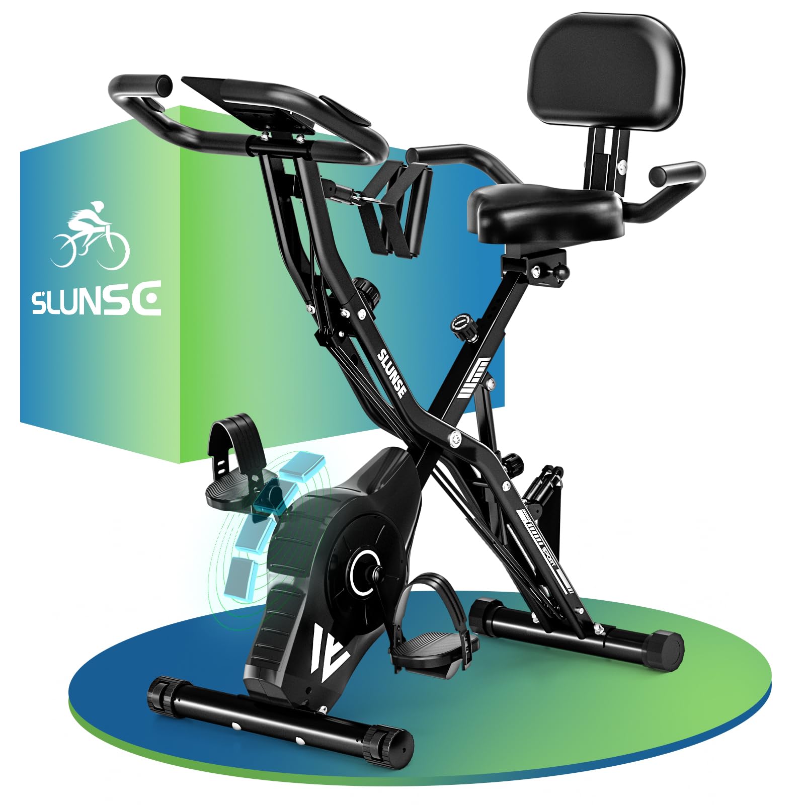 SLUNSEエアロバイク家庭用静音フィットネスバイク5機能折りたたみ16段階負荷調節LCDモニター&タブレットトレイ付きコンパクト収納組立簡単耐荷重160kg日本語説明書付き