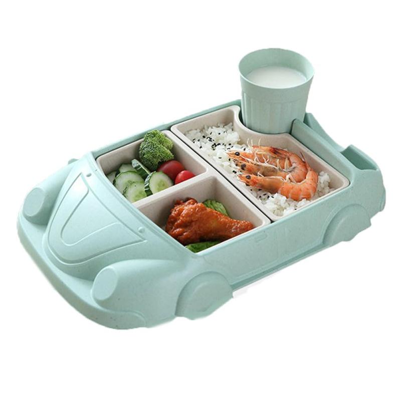 [EFFORTS]子供用食事皿ランチプレート4点セット子供用食器セット赤ちゃん用キッズプレート天然竹繊維可愛い仕切りキャラクター補助食皿幼稚園離乳食訓練耐熱耐冷取り外し可能耐久性出…