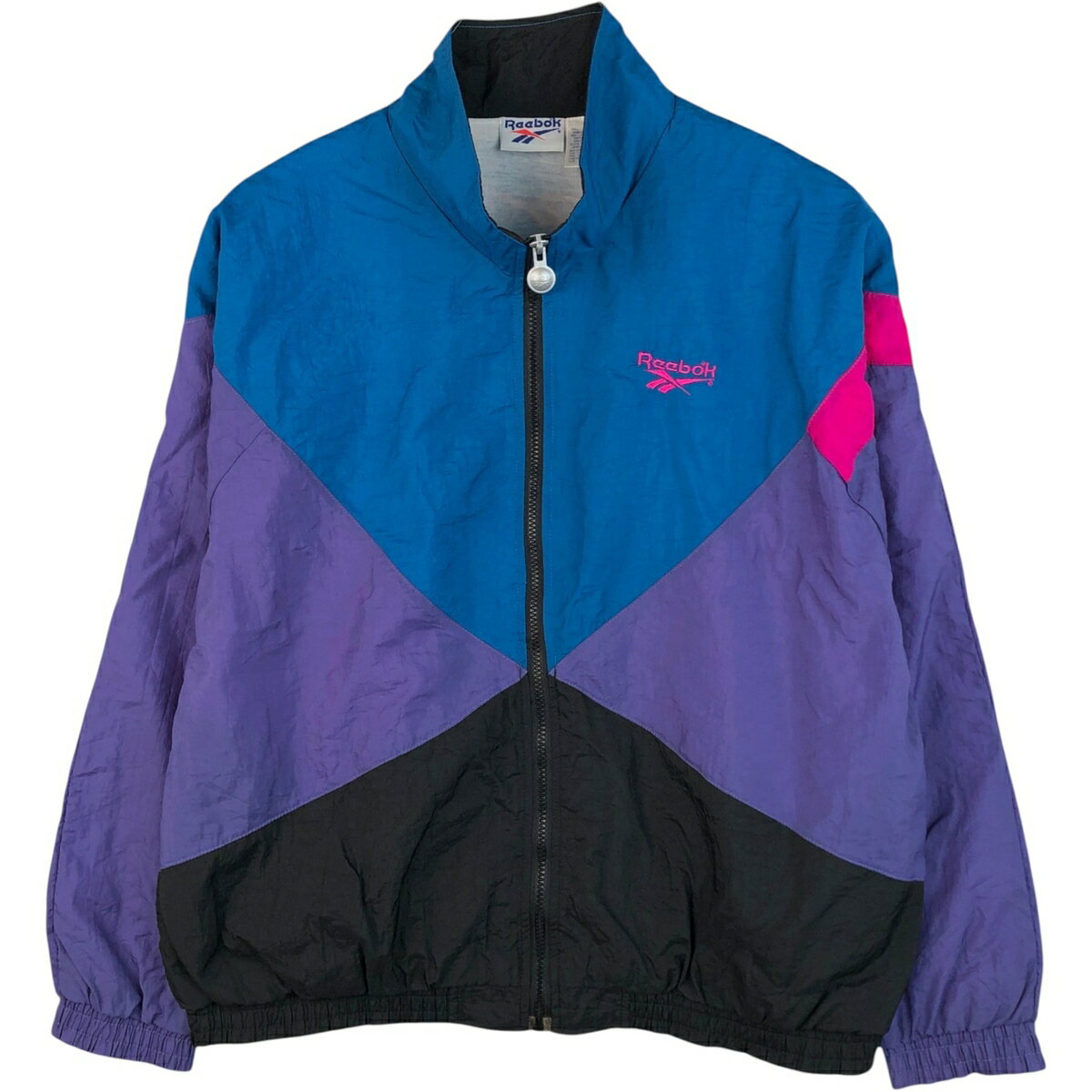 【中古】【古着】 90s〜 Reebok ジャケット XL〜 パープル リーボック ジップアップ ワンポイントロゴ ロゴ刺繍 スポーティー アウター 春物 a803-6720