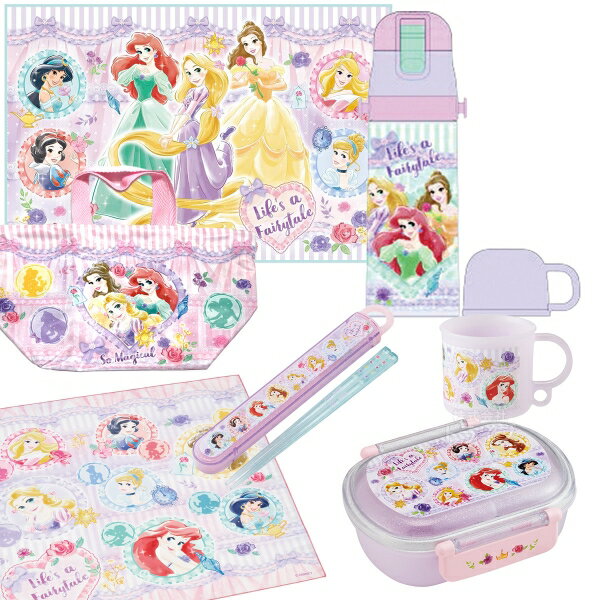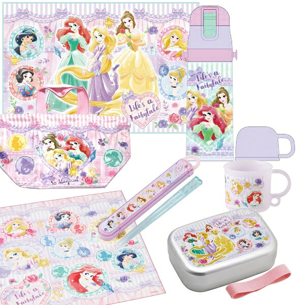 ディズニー プリンセス 26 お買得10点セット 洗いやすいお弁当箱 360ml 箸&箸箱 巾着 2WAY水筒 コップ コップ袋 レジャーシート おしぼり ランチクロス シール容器3P