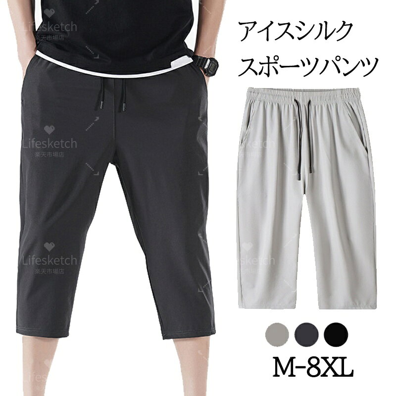 パンツ メンズ 接触冷感 薄手 9分丈 カジュアルパンツ イージーパンツ ストレートパンツ スラックス 無地 伸縮性 スポーツ ルームウェア 部屋着 春夏 ブラック グレー グリーン ポリエステル