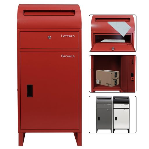 POST2HOME宅配ボックス屋外大容量戸建て用ポスト置き配ボックス郵便受け大型防水簡単組立宅配BOX円弧形置き型鍵付き案内ステッカー付きポスト付き玄関盗難防止(明るい赤)