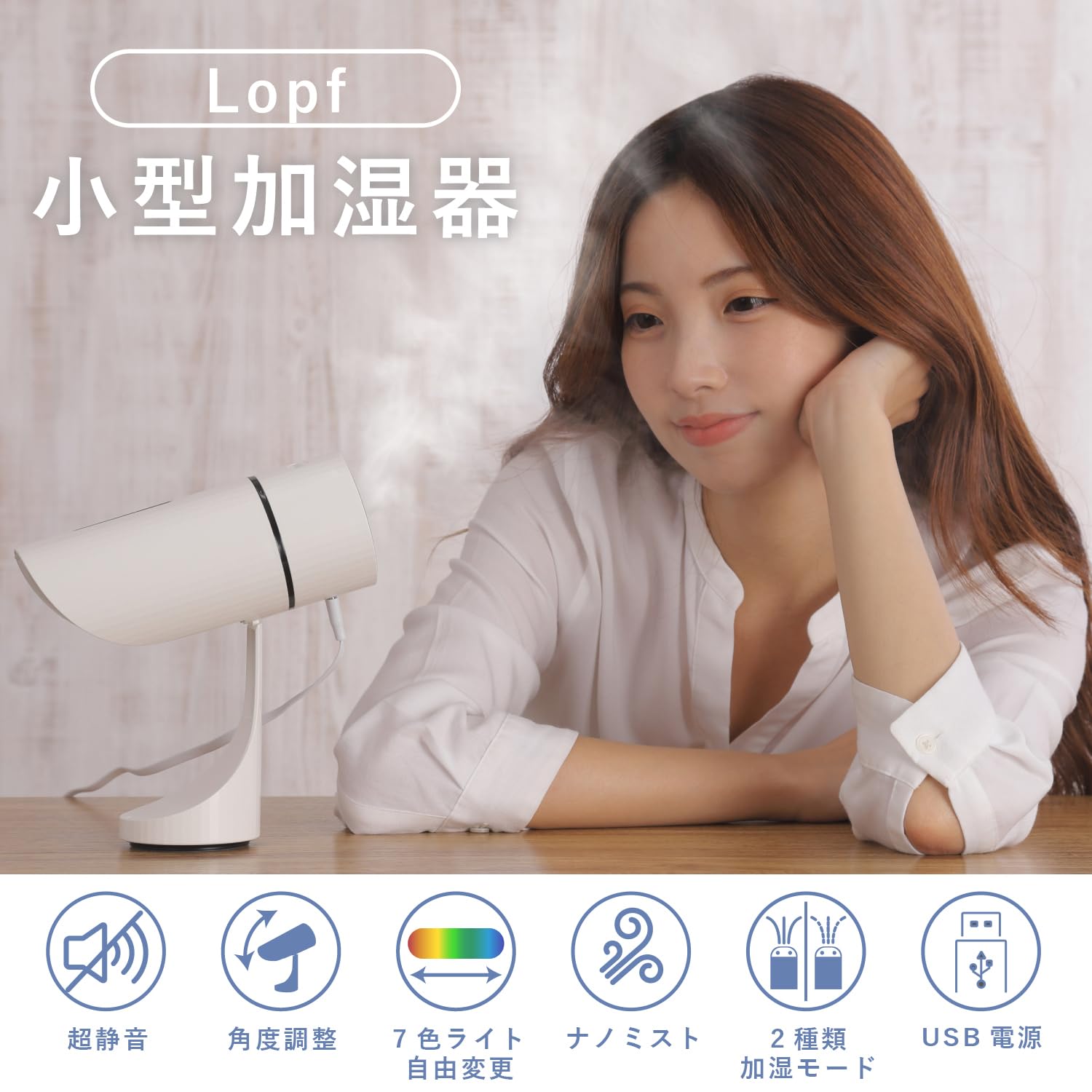超音波加湿器 おしゃれ 大容量 USB 静音 コンパクト 卓上 省エネ 節電 エコ 持ち運び 次亜塩素酸水対応 300ml 小型 加湿器 給電式 LEDライト付き 車載用