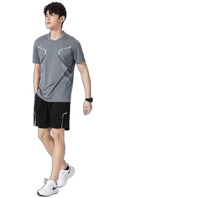 スポーツウェア メンズ バスケットボール トレーニングウェア 上下セット 接触冷感 吸湿速乾 Tシャツ ハーフパンツ 普段使い 薄手 グレー ブルー グリーン レッド ポリエステル