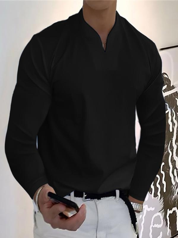 Tシャツ メンズ 男性用 スポーツウェア トレーニングウェア Vネック 長袖 ポロシャツ トップス ポリエステル 無地 スリムフィット ホワイト ブラック ブルー カーキ 吸湿速乾 通気性