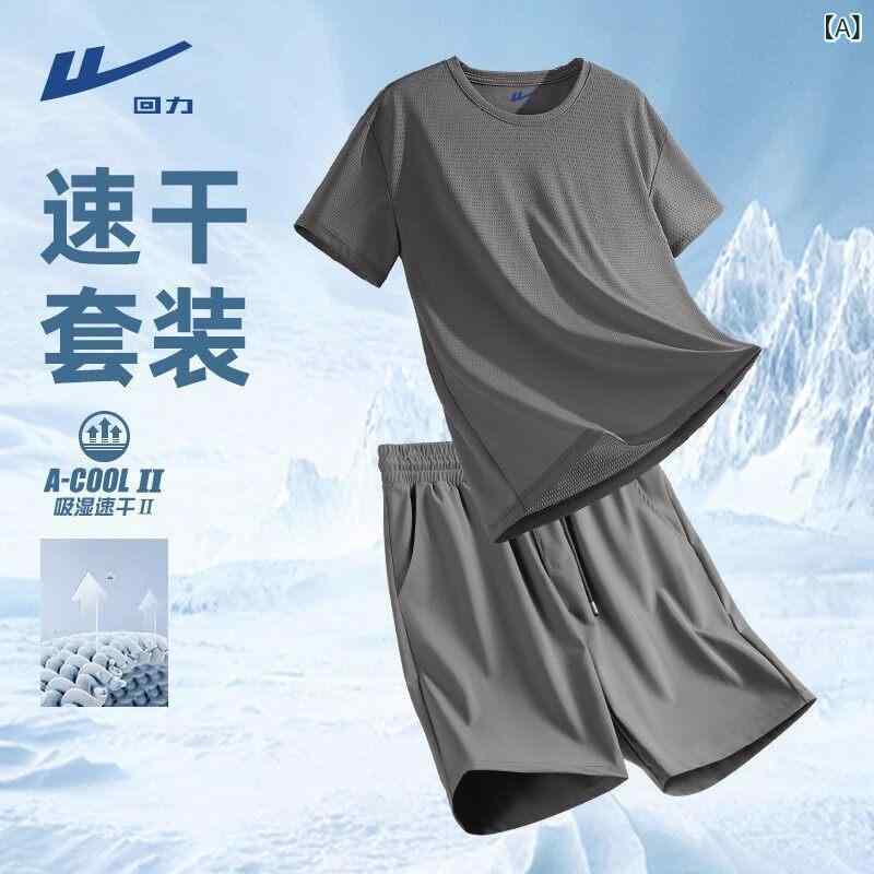 スポーツウェア メンズ 薄手 メッシュ 半袖 Tシャツ ショートパンツ 上下 2点セット 接触冷感 吸湿速乾 ポリエステル 部屋着 ルームウェア 普段使い アウトドア トレーニングウェア(x2)