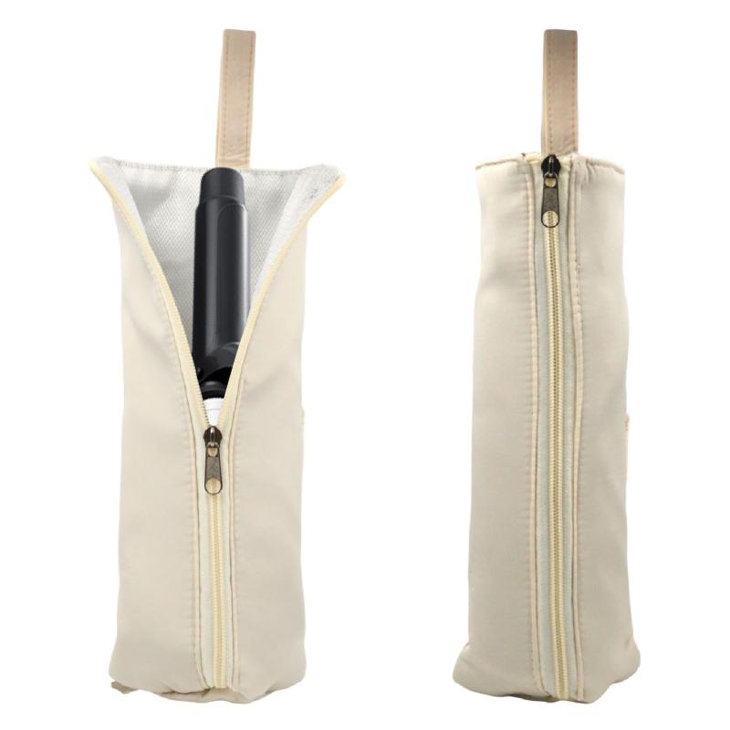 KKLM ヘアアイロン ケース 収納 カールア 耐熱ヘアアイロン収納ケース 300度対応 熱いまま収納可能 吊り下げポーチ コード収納ポケット付き カールアイロン収納 旅行用 持ち運び便利 (ベージ
