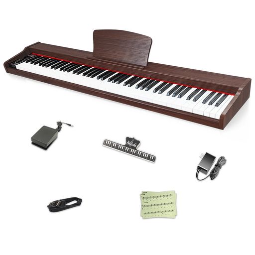 IKTMI電子ピアノ88鍵盤ハンマーアクション鍵盤木製ピアノ88鍵3本ペダル付きアップライトピアノDigitalPiano人気電子ピアノMIDI対応大人初心者の練習サブブラウン