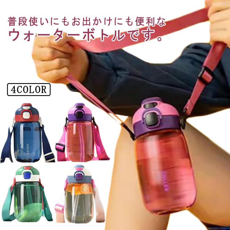 ウォーターボトル 水筒 スポーツボトル 550ml 大容量 目盛り付き ストロー 直飲み 肩掛け 漏れ防止 大人用 子供用 ストライプ付 携帯便利 運動 アウトドア 山登り 自転車 送料無料