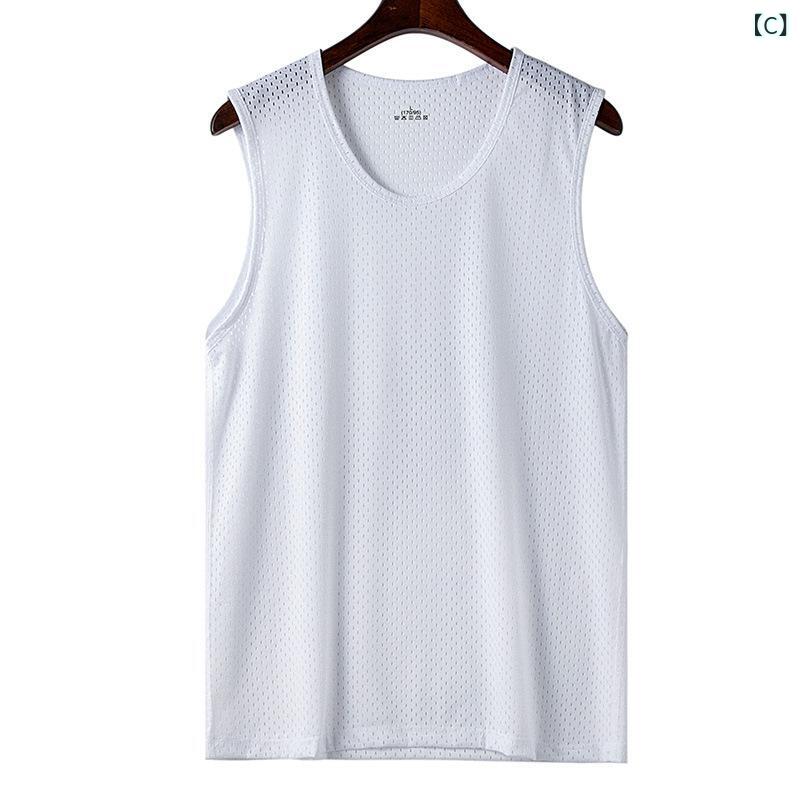 Tシャツ メンズ 男性用 スポーツウェア 接触冷感 ノースリーブ トレーニングウェア 吸湿速乾 メッシュ 通気性 ランニング ジム 部屋着 アウトドア 白色 灰色 黒色 緑色 紺色 春夏