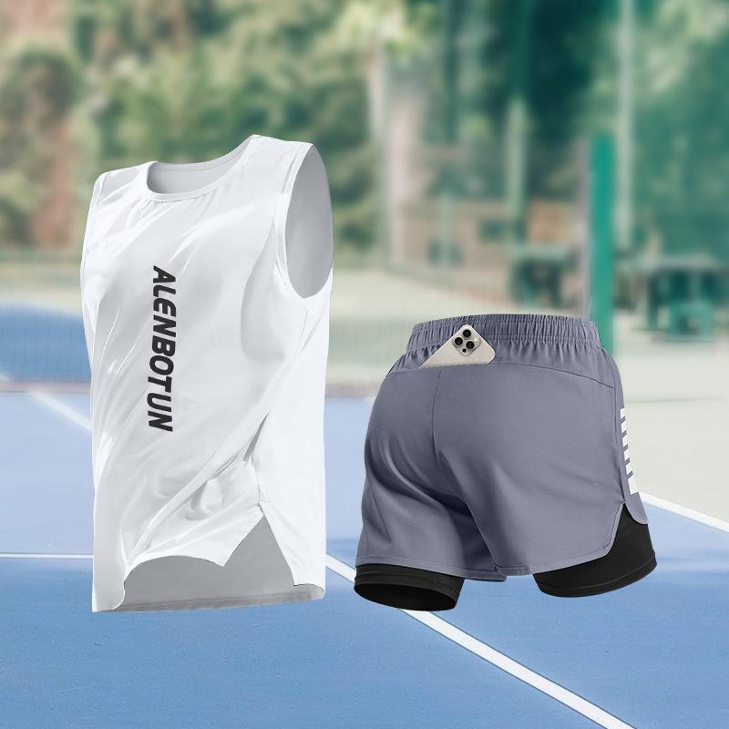 スポーツウェア メンズ トレーニングウェア 上下セット 夏用 接触冷感 吸湿速乾 ノースリーブ Tシャツ ショートパンツ ポリエステル ランニング マラソン 運動着