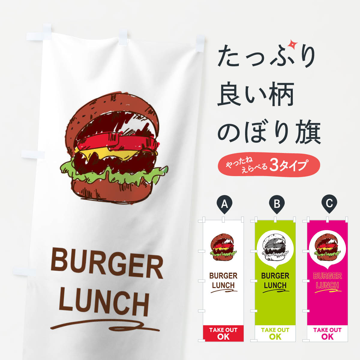 のぼり旗 ハンバーガー のぼり 寸法60×180 丈夫で長持ち【四辺標準縫製】のぼり旗 送料無料【3980円以上で】のぼり旗 オリジナル/文字変更可/のぼり旗 ハンバーガー のぼり