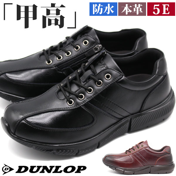 スニーカー メンズ 靴 黒 ブラック ワイン 本革 甲高 幅広 5E ファスナー 防水 レインシューズ 軽量 クッション 厚底 ジップ コンフォートシューズ ダンロップ DUNLOP DR-6255