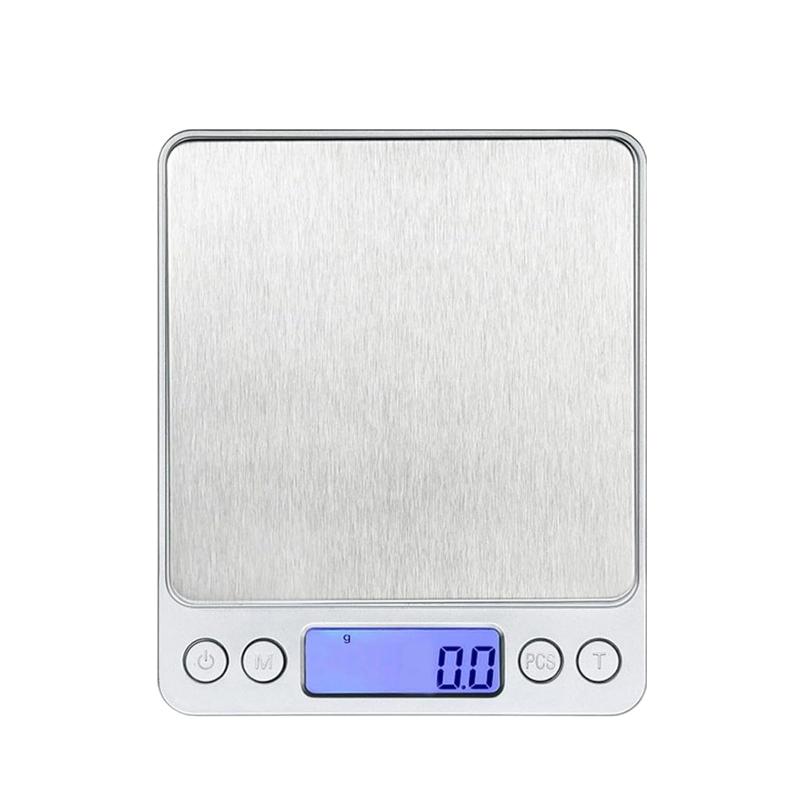 はかりキッチン500g精密スケールはかりデジタル0.01g小型コンパクト薄い多用途ステンレス鋼計量器測り料理調理オートオフ無料の大小トレイ製品マニュアルシルバーFrenflu