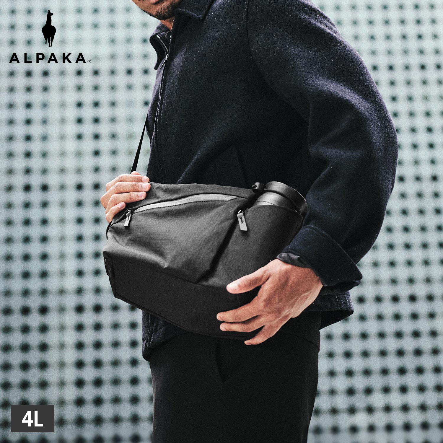 アルパカ ALPAKA バッグ ショルダーバッグ スリングバッグ メンズ レディース 4L 斜めがけ 撥水 軽量 耐久 FLOW SATCHEL ブラック 黒 4185