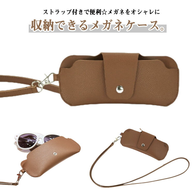 メガネケース ストラップ付き サングラス 首下げ 送料無料 保護 ソフト グラスホルダー 眼鏡ケース PUレザー 送料無料 ネックストラップ 軽量 コンパクト メガネ入れ