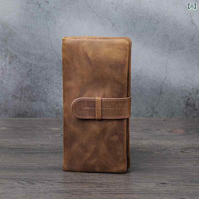 メンズ 財布 ウォレット ヴィンテージ ホース レザー メンズ ウォレット マルチ カードスロット大容量 クラッチ ロング ドローストリング ウォレット第一層 牛革