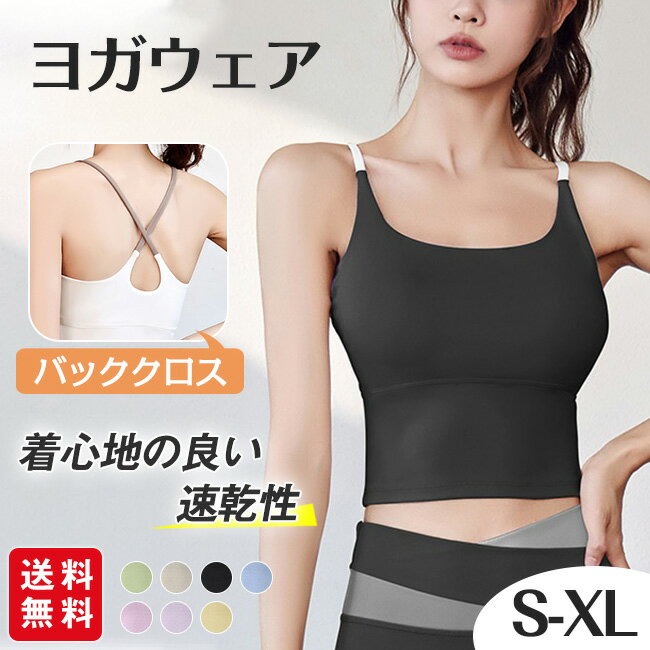 ヨガウェア トップス カップ付き タンクトップ ブラトップ ピラティス ジムウェア ホットヨガ バッククロス ノンワイヤー 速乾 吸汗 軽量 伸縮性 スポーツウェア レディース